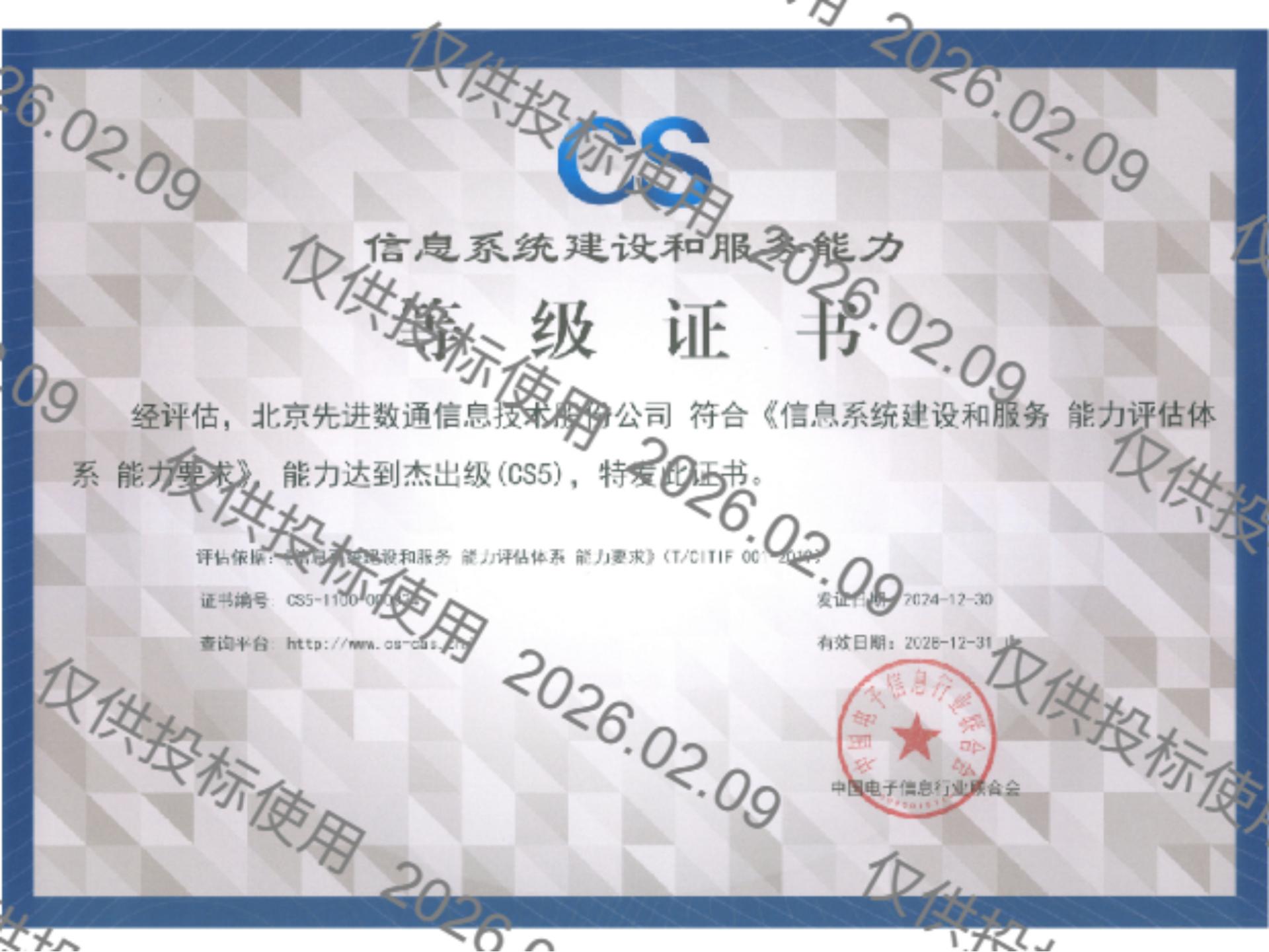 凯发k8国际先后取得CMMIL5、软件能力成熟度五级(SPCA 5)、信息系统建设和服务能力评估体系(CS)5级、ITSS成熟度一级、信息系统安全集成服务资质二级、信息系统安全运维服务资质二级、国产化信息系统集成和服务能力评估四级(LS4)、北京市企业技术中心等资质认证,并取得ISO9001、ISO20000、ISO27001、ISO14001、ISO45001、ISO22301、ISO37001、ISO28001、GBT29490等标准体系认证,具备行业领先的技术开发、工程实施及服务保障能力。